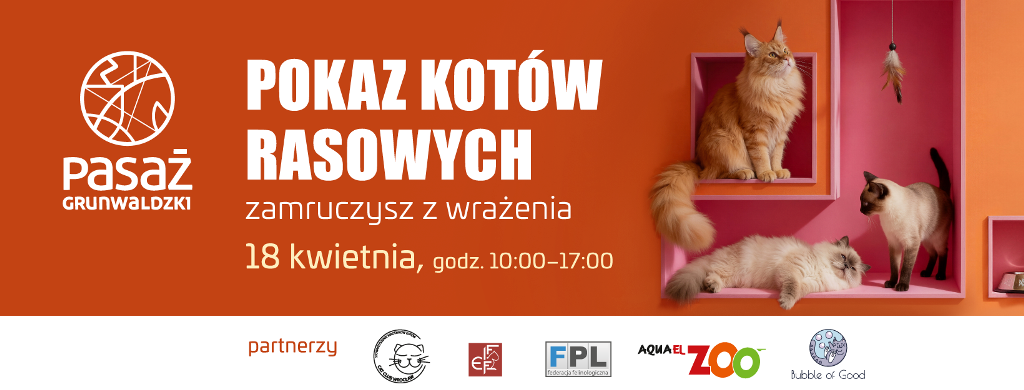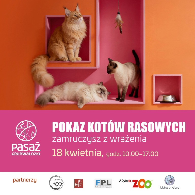 Wrocław – Pokaz Kotów 18.04.2026 (sobota) PASAŻ GRUNWALDZKI (atrium koło Reserved) / w godz. 09:30-17:00