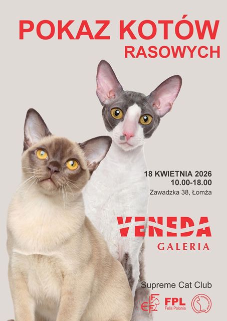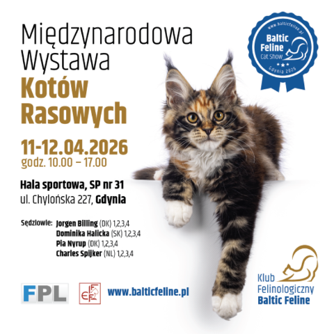 12/04/2026 - Wieści z wystawy w Gdyni (FIFe) 11/12.04.2026W ten weekend odbyła się też wystawa w Gdyni (PL) pod patronatem FIFe, która była zorganizowana przez Klub Felinologiczny Baltic Feline. Na wystawę wybrali się nasi klubowicze wraz ze swoimi kotami.